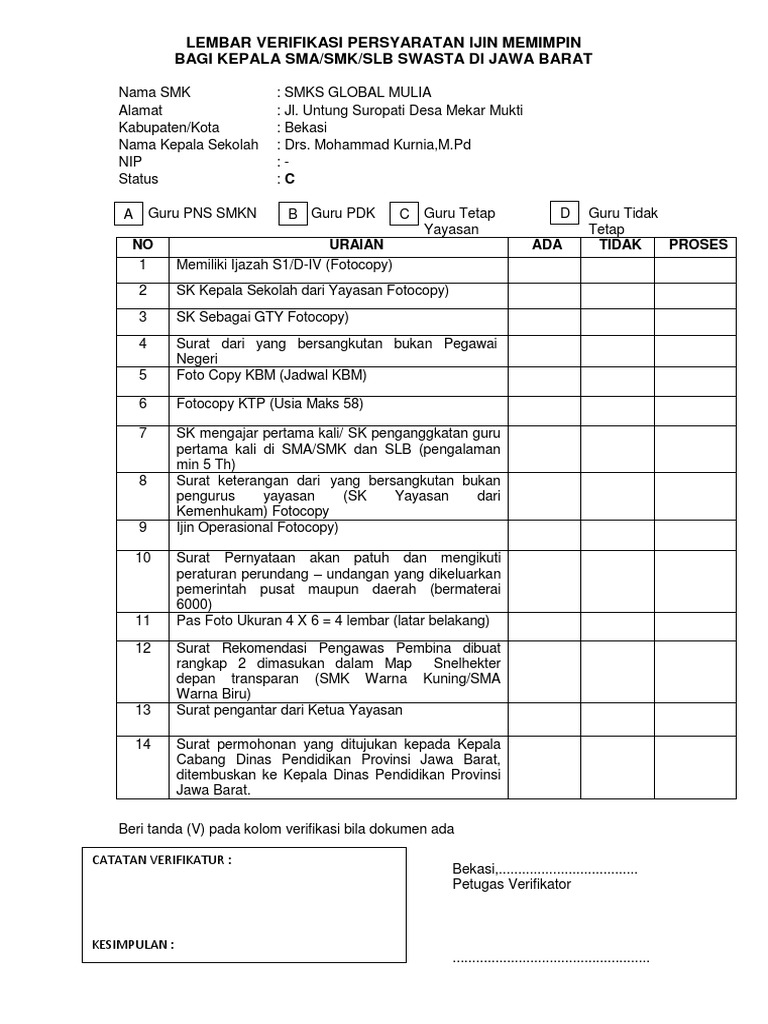 Contoh Surat Permohonan Insentif Guru Ngaji Berbagi Dubai Khalifa from i0.wp.com Format atau aplikasi instrumen pkks ini ini dapat digunakan untuk semua jenjang sekolah baik untuk kepala sekolah sd/mi, smp/mts maupun sma/smk/ma. Dapat / belum memenuhi syarat untuk diterbitkan surat keputusan izin. Namun jika ditelisik lebih jauh, dua hal ini bisa saling mempengaruhi satu sama lain. Kepala sekolah tersebut bisa mengirimkan surat permohonan izin kepada kepala dinas pendidikan untuk menerima siswa baru di sekolah yang dia pimpin. 3.1 catatan kegiatan social (kunjungan ke warga sekolah) 4. Data diri kepala sekolah 5. Dengan membagi peran dan tanggung jawab. Ffinopatkan sk dan sertifikat izin memimpin bagi kepala sekolah swasta.